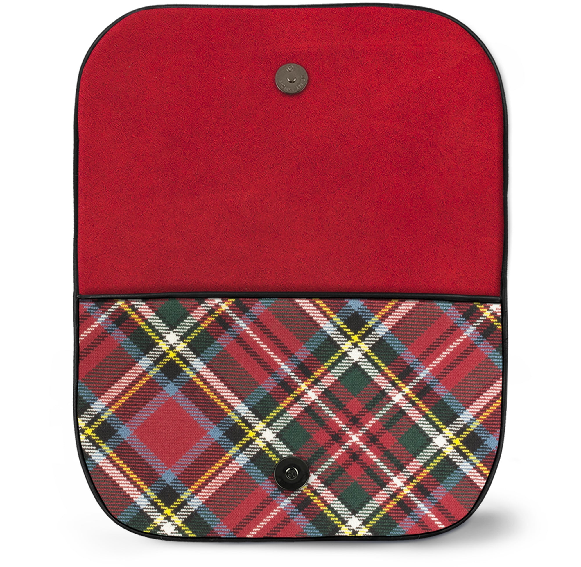 The Prince Charles Edward Stuart (Modern) tartan clutch is a perfect evening bag – simple and elegant. It is lovingly hand-crafted in Scotland, using only the highest quality materials. Fine black leather piping frames the tartan, which is itself carefully chosen and precisely positioned, to appear at its very best.