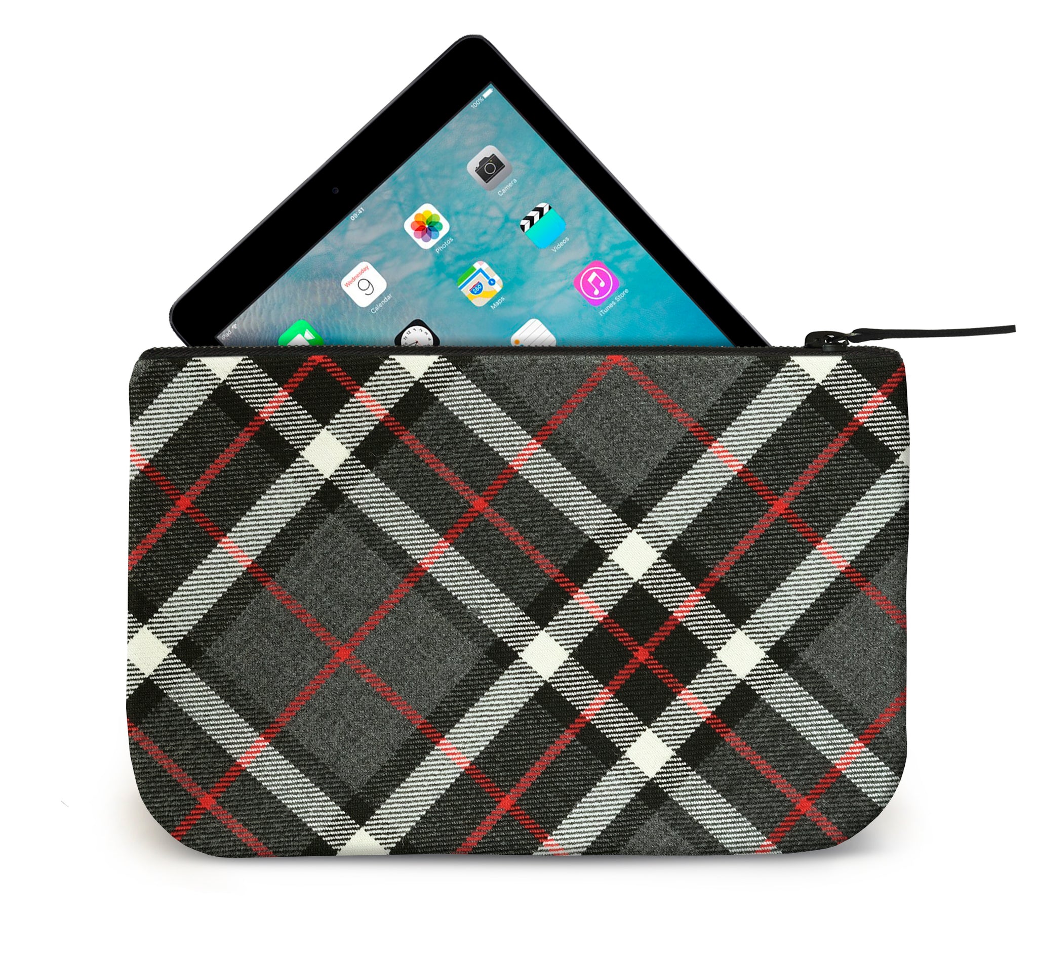 The tartan and leather iPad case will fit all models of the basic iPad, iPad mini, iPad Air, iPad 11, iPad Pro 10.5 (2017) and iPad Pro 9.7 (2016). The padded lining will protect your device, but also gives the bag a luxurious feel.