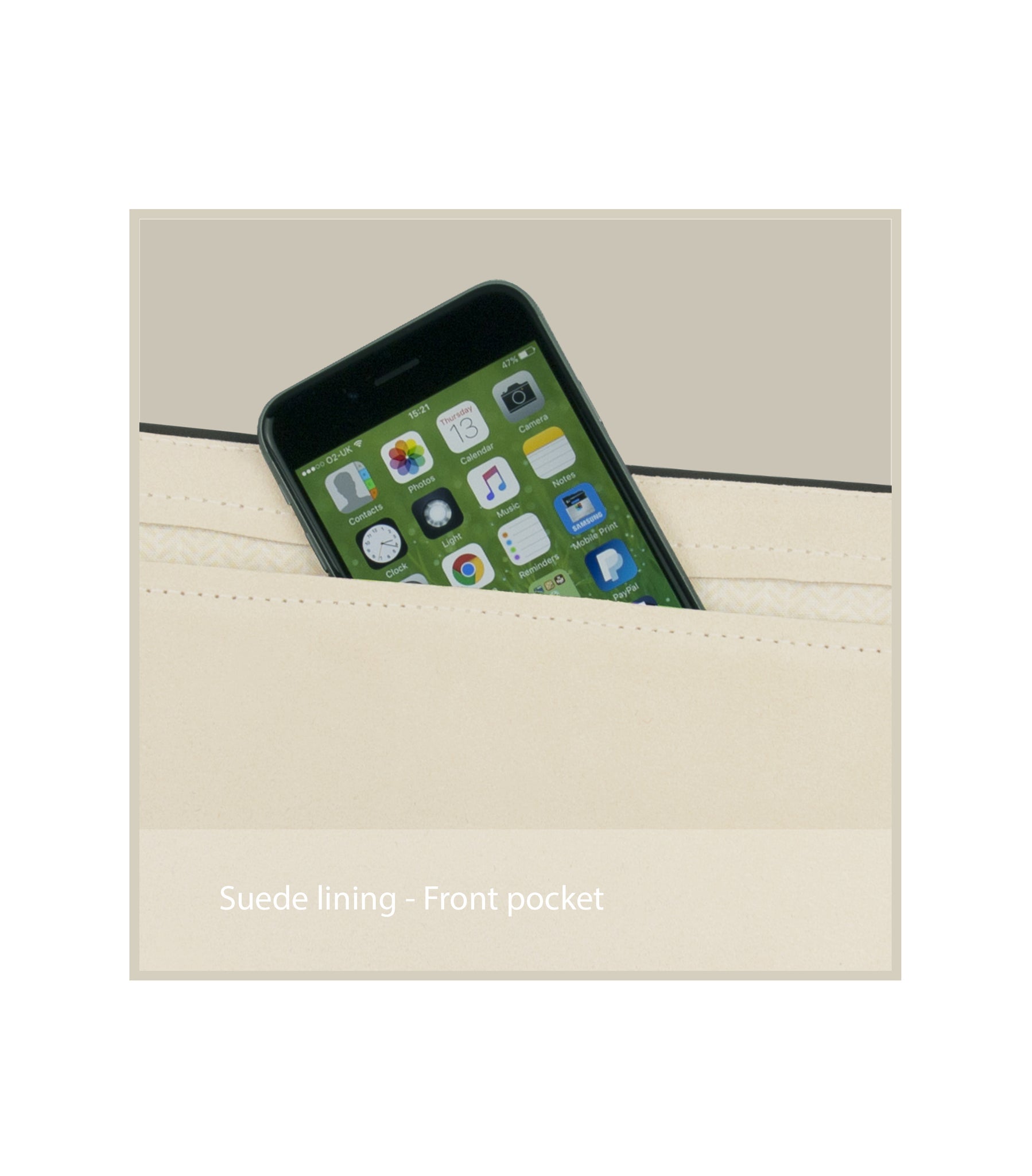 内側の裏地はスエードで、バッグを開いたときに見栄えがよく、タータンチェックとスエードを一緒に見ることができます.バッグの本体に鍵と化粧品を収納し、背面にはお金と貴重品用の独立したジッパー付きポケットがあり、携帯電話は全幅の前面ポケットに安全に収納できます。