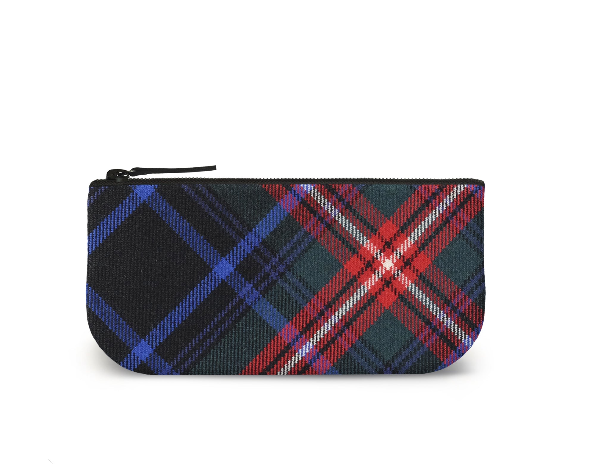 The front and back of the clutch is Braveheart tartan and the lining is cotton. The bag features a strong metal zip, with a leather pull tab.